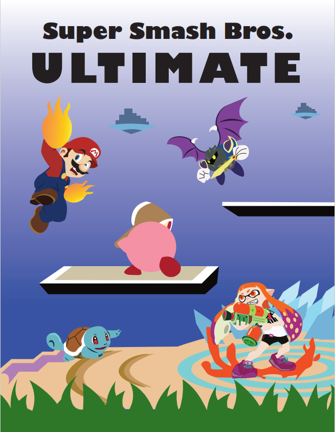 I designed three distinct posters at least two exemplifying a customized typeface to advertise two popular game series. I chose a fighting game entitled "Super Smash Bros. Ultimate" and an adventure game series entitled "Pikmin." This project was completed with Adobe InDesign and Adobe Illustrator.